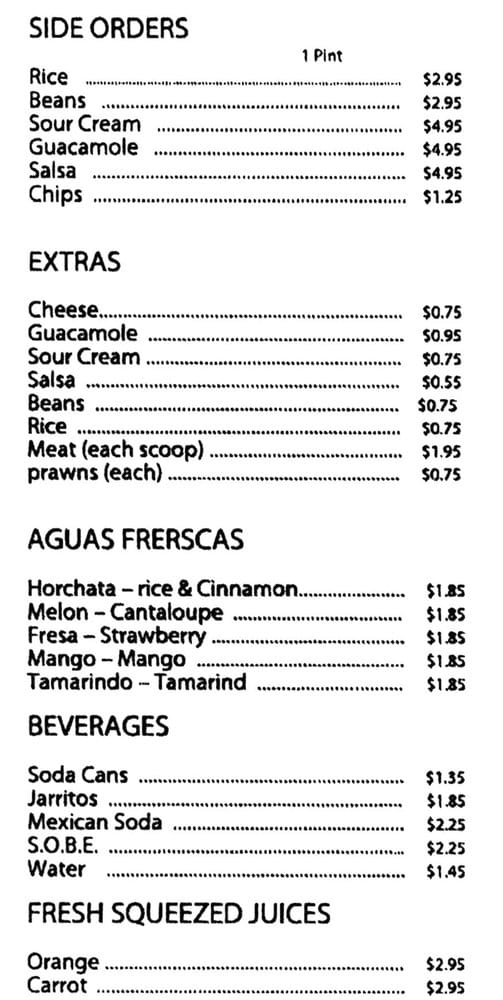 Fried corn tortilla with eggs. Served with rice, beans, guacamole, and sour cream. Except omelette burritos.